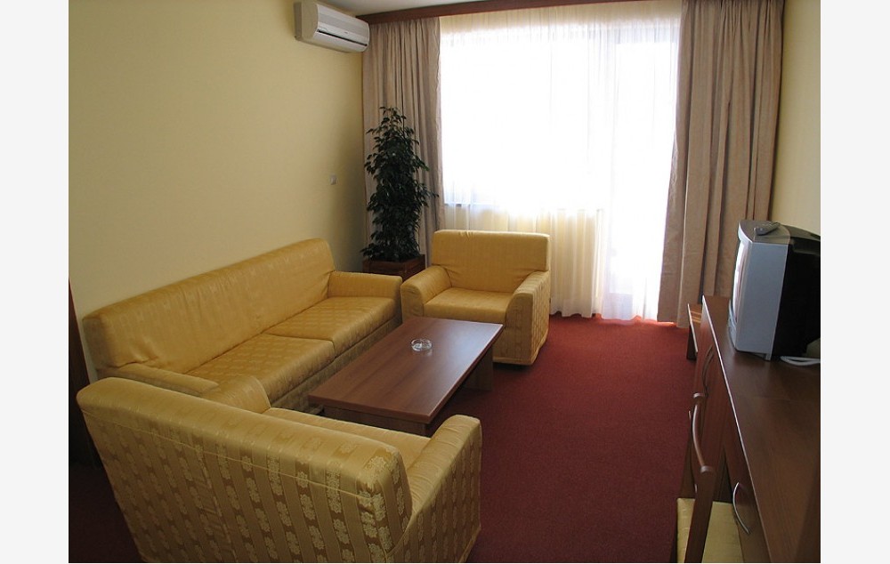 Sadržaj: Hotel ima 3 sprata, lift, sef na recepciji (uz doplatu), zatvoreni bazen (28°c), intenret kafe, wi-fi internet u lobiju, menjačnicu, parking (besplatan), restoran, dva bara, skijašnicu, stoni tenis, kuglanje, bilijar, igraonicu, kongresnu salu, solarijum i masažu (uz doplatu) i fitness, saunu i parno kupatilo (besplatno).